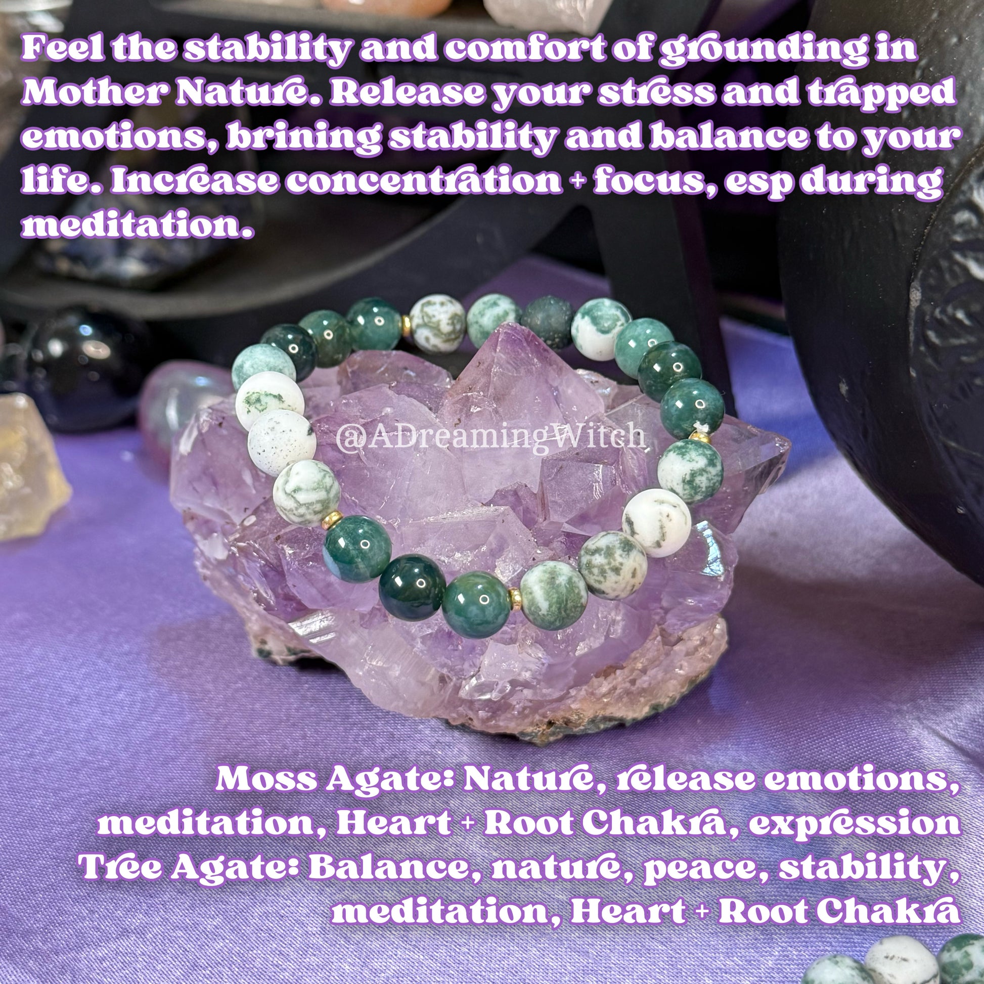Heart Centered Grounding Bracelet | Intention + Reiki Infused | Moss + Tree Agate