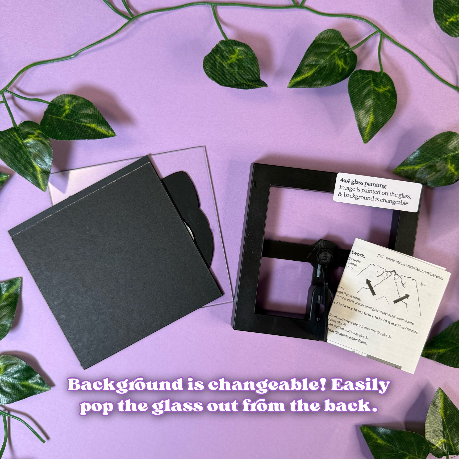 ✿ Unlike prints, the design is painted ONTO the glass, therefore you can opt to swap out the background if you desire a different color! Simply push the glass forward from the back and pop it out through the front, add your backing, and pop it back in!