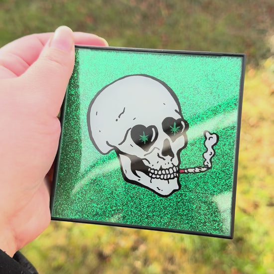 Smoking Skull 4x4 Glass Painting