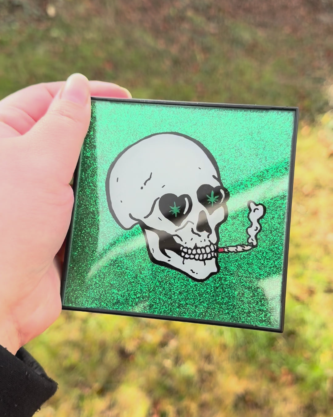 Smoking Heart Eye Skull 4x4 inch Glass Frame Painting ✨