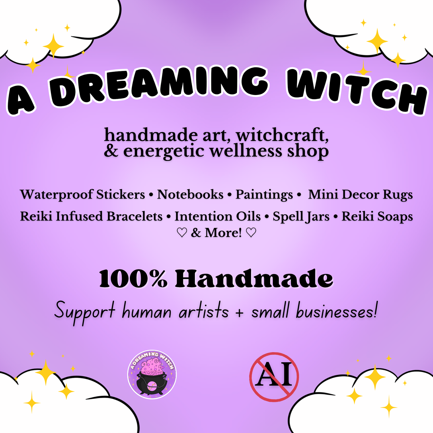 We do not support using generative AI at A Dreaming Witch. We take pride in making, drawing, and designing all of our products by hand with love infused in every step of the process. ♡